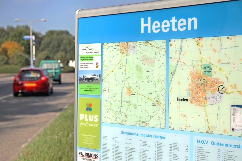 In Heeten staan langs de diverse invalswegen gedetailleerde plattegronden. Op de plattegrond staan de plaatselijke ondernemers aangegeven met een advertentie én locatie aanduiding in de kaart. De plattegronden zijn ook 's nachts goed te bekijken, want ze zijn geplaatst in lichtkasten.