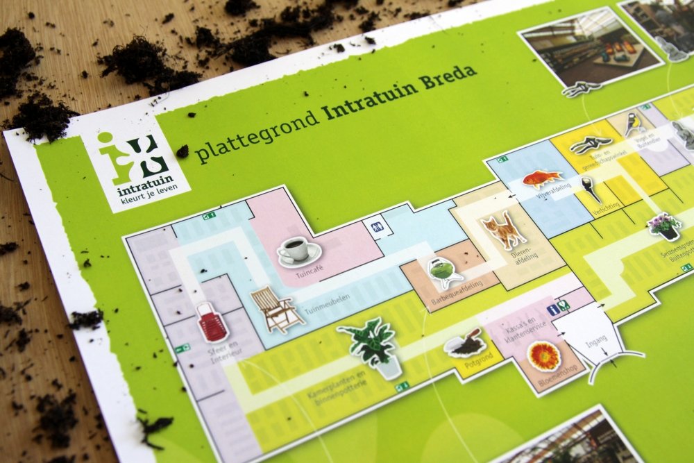 Na een grondige verbouwing van de winkel heeft Intratuin Breda door ons een nieuwe winkelplattegrond laten maken. De route door de winkel en de verschillende afdelingen zijn op een beeldende wijze in kaart gebracht.