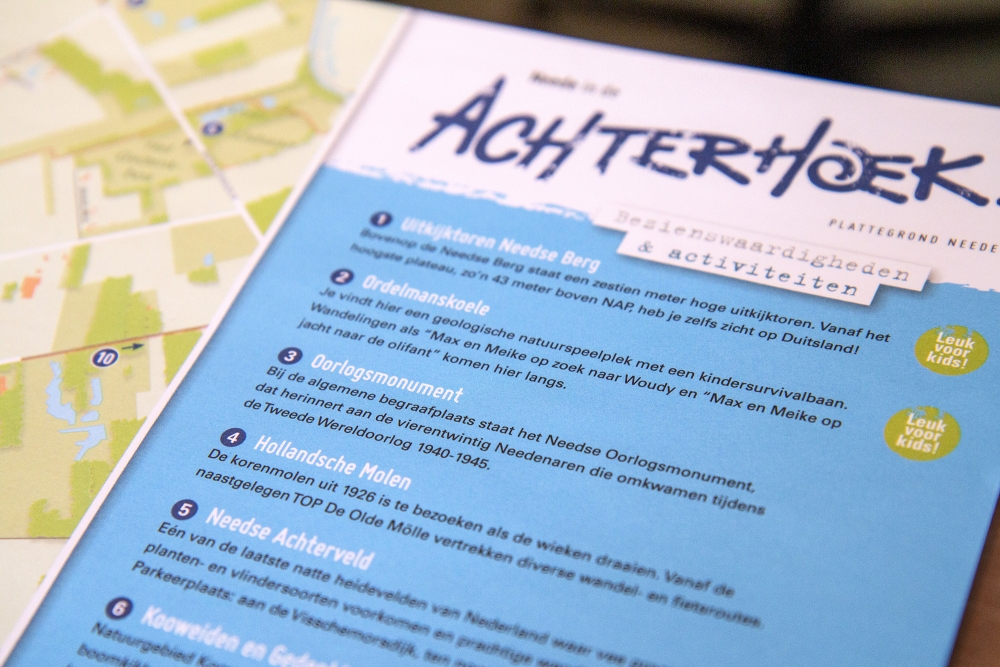 Voor Achterhoek Toerisme hebben wij een toeristische kaart gemaakt van Neede. Ga vanuit de plaatselijke VVV op onderzoek uit langs de mooiste plekjes in en rondom de plaats, daar is deze handzame kaart ideaal voor. De kaart en de opmaak hebben wij verzorgt in de huisstijl van Achterhoek Toerisme.